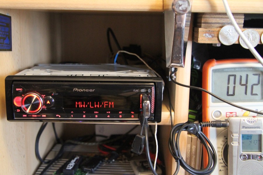 I admit that I got a bit flustered on take one of the little video clip I like to make though, having managed to confuse the unit until it didn’t show Spotify as a source option. It also said NO SIGNAL on the DAB. Puzzled, I phoned Team Impulse in Watford, my local experts, to see if they might advise me. I was certain that I needed an adaptor to get DAB. He put me right and explained the whole SMA/SMB screw-down versus push-fit DAB plugs and sockets thing by market. I powered down the Daiwa power supply which looked like the battery has been disconnected to the radio. It reset, tuned itself to the DAB stations and once again showed that I could play Spotify as a source.