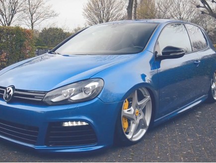 Prepared to be amazed. It's Steven Soprano's 370bhp Mk6 Golf GTi on Ferrari 458 wheels and air ride.