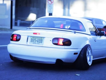 We've seen some crazy wide wheels on Mazda's little MX5, but check out this stanced Miata on 11x14-inch wheels. Mental!