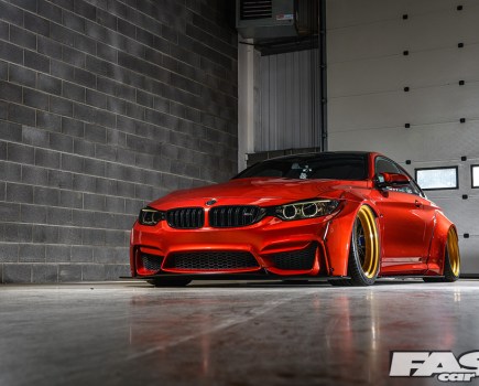 Rolling on 12.5x20-inch forged Savini rims and wrapped in retina smacking chrome, this Liberty Walk wide-body BMW M4 is not one for the faint hearted.