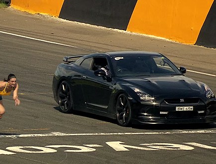 Clarkson races a Nissan GT-R against Australian hurdler Michelle Jenneke. Place bets now...