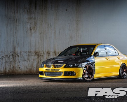 Think Mitsubishi Evo and chances are the car you picture is a caged up rally weapon. Rich Colbeck's Liquid Yellow Evo VIII takes those preconceptions and kicks them to the curb!