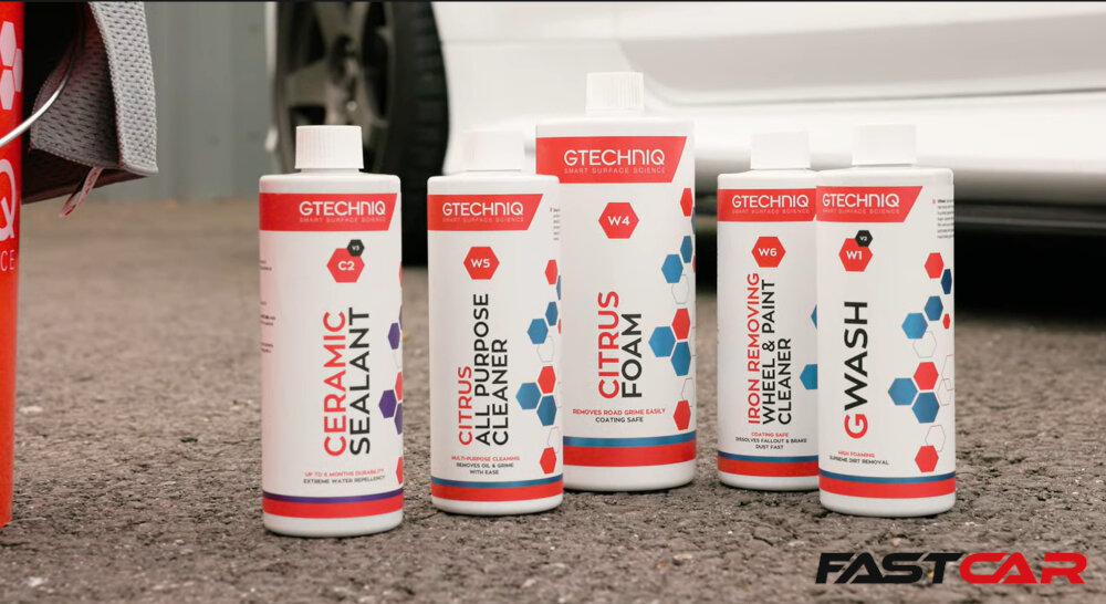Before diving into the wash, you’ll need some essential cleaning products. We’re fans of Gtechniq here at Fast Car, so naturally we turned to their range of wash and decontamination products. These are designed to be compatible with the Gtechniq ceramic coating we previously applied, so we can rest assured we won’t damage or strip the coating.