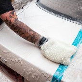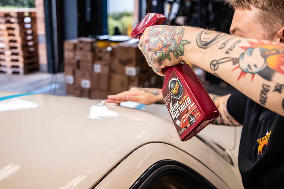 The guys use Wash Plus for this stage; this is different to Meguiar’s other shampoos, in that it is has clay suspended within it and it’s squirted directly onto the wash mitt for application, and it’s essentially like an exfoliator for the paintwork. Any embedded contaminants within the paint are dragged out, and this is the perfect preparation for when the car can then be moved into the detailing bay for paint correction.