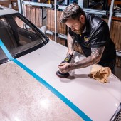 Stage five? That’s where we arrive at waxing and protecting. You see, while polish is a vital part of the system and does a very important job, it’s vital to bear in mind that it offers no protection in itself – which is why you need Ultimate Wax. This comes in paste and liquid form, and the choice is really down to personal preference; Tom prefers the liquid while Dale favours the paste, so at this point they each take their chosen viscosity and get busy with the paintwork once more. In either case, it’s applied with a foam pad before being buffed away with a soft cloth. Impressively, Tom and Dale have spent a full day on the Lexus so far (fear not though, the process of narrating, photographing and filming the detailing necessarily slows it down a bit; if you were to try this at home, you mightn’t have to book an extra day off work!), so it’s time for them to put their feet up and crack open a cold one.
