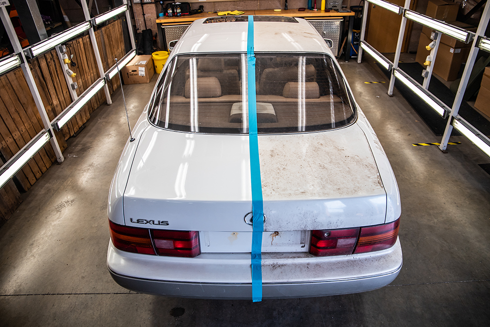 But out of sight for one person doesn’t have to mean out of mind for all. When we consider the massive excitement in recent years for barn finds (genuine or otherwise), the idea of picking up a tidy but filthy modern-classic and bringing it back to life is a supremely attractive one. And that’s where the detailing artisans at Meguiar’s come in. They couldn’t bear to see this complete and solid Lexus left in such a grotty state and, when it arrived at their HQ in a trailer, the spark of an idea immediately ignited.