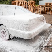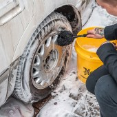 With one side of the Lexus masked off, Dale and colleague Tom Clarke started off by treating the lower sections and grimy plastics with Heavy-Duty Multi-Purpose Cleaner, which is good for de-greasing and cleaning both painted and non-painted areas, as well as spraying the wheels with Ultimate All Wheel Cleaner. With these concoctions working away, the fellas fired up the pressure washer and treated the bodywork to a bubbly slathering of Ultimate Snow Foam – the extreme cling softens any contaminants on the surface, which can then be rinsed off to reveal the true colour beneath. There’s a thoroughness necessary with all of this, as there’s all sorts of caked-on nastiness embedded within the nooks and crannies which Tom and Dale set about with brushes and elbow grease, but it’s worth remembering that these are all readily-available consumer products. Spray it on, wash it off, there’s no mystery to it.