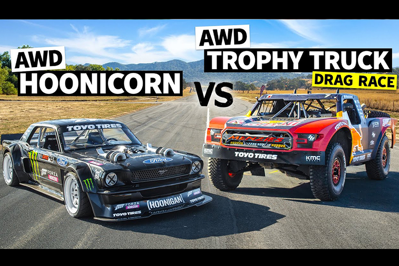 It’s another video of Hoonicorn vs the world. This time, Ken Block’s Hoonicorn Mustang is going up against the 950bhp Trophy Truck with AWD and paddle shift. Who will win?