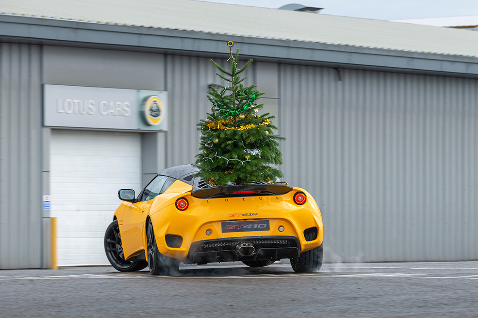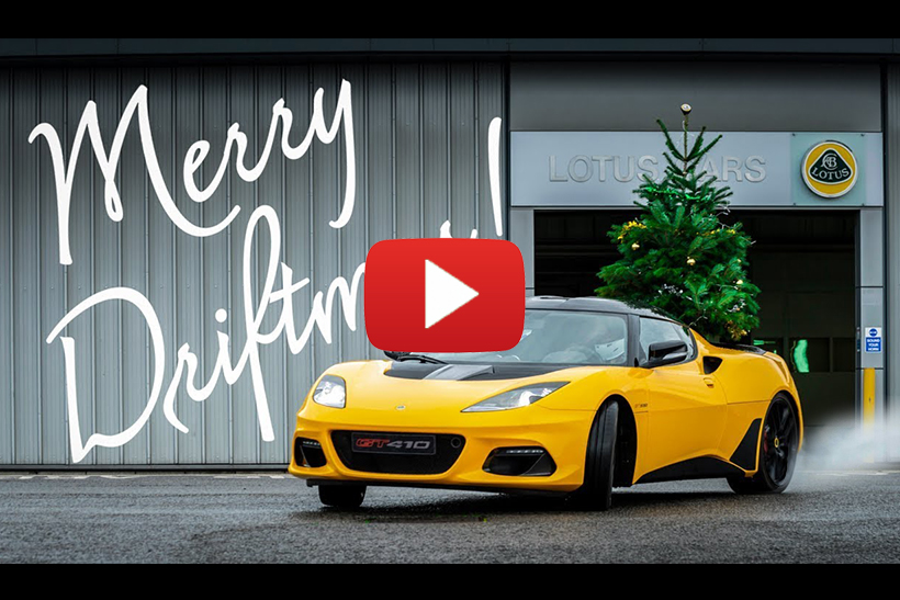 As it’s Christmas, Lotus thought they’d strap a Xmas tree to a 410bhp Evora GT410 and drive it sideways around their production plant in Norfolk. Why? Well, because it’s what baby Jesus would have wanted. And you can’t argue with that!