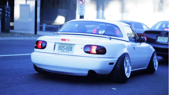 We’ve seen some crazy wide wheels on Mazda’s little MX5, but check out this stanced Miata on 11×14-inch wheels. Mental!