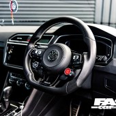 Mk6 R wingbacks – retrimmed in nappa leather, rear seats and doorcards retrimmed to match, custom Mk7 R steering with Audi TT RS start button and drive select, Vektor Technik data display unit, OSIR Design dead pedal to match accelerator and brake pedals, Rockford Fosgate speakers throughout, 10” Rockford Fosgate Punch subwoofer, 2x Rockford Fosgate amplifiers