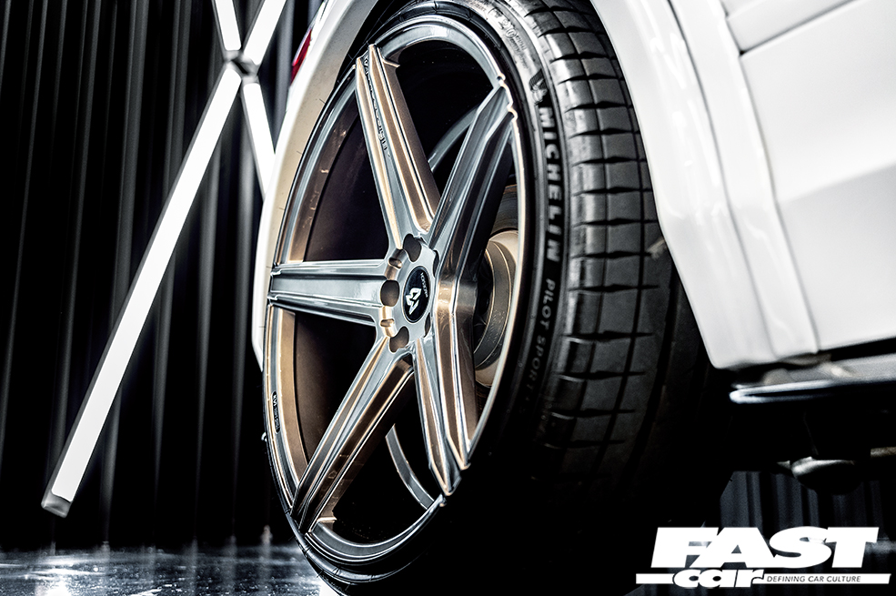 10×22” MB Design KV1 wheels, 255/30 Michelin Pilot Sport 4 tyres, KW V3 coilovers, H&R anti-roll bars, Racingline Stage 3 380mm 6-pot BBK