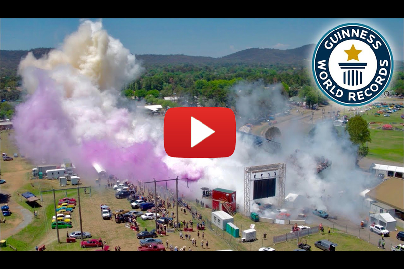 Take 126 Aussie cars, add some tarmac and some smoking tyres and what do you get? Only a new a Guinness World Record for the largest simultaneous car tyre burnout in history, that’s what!