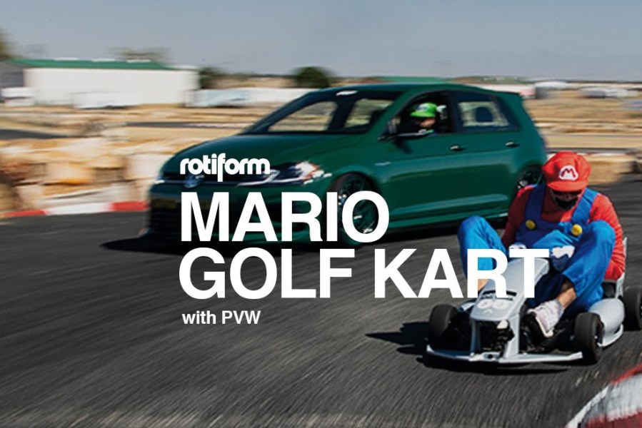 Jason (Luigi, @imsoovertheinternet) and Carl (Mario, @players_carl) battle it out at home and magically take it to the track, where Luigi wins the Performance VW cover in his Mk7.5 VW Golf R on forged Rotiform DTM Wheels.