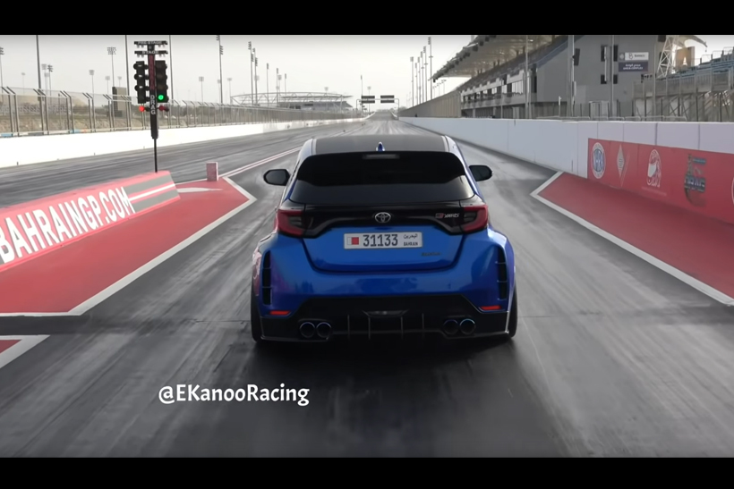 To achieve a 10 second quarter mile and extract 519whp from a tiny 1.6-litre three-cylinder turbocharged engine is no small feat. While the details on all the GR Yaris tech specs aren’t mentioned, we’re led to believe that this has been achieved on the stock engine, and is not a fully forged motor. What we do know is that EKanooRacing, who is famous for building mental motors (and dynoing that Lexus LFA), is using a custom single turbo from Pure Turbo, mated to a new exhaust system, intake, intercooler and other cooling equipment, and brought together by a MoTec M150 ECU to help tailor the performance. The record run was completed at Bahrain International Circuit’s drag strip on road tyres.
